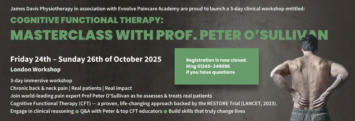 Welcome to James Davis Physiotherapy, an Essex physiotherapist recognised for world-leading treatments and a genuine patient-focused approach. My committment is to give you an understanding of your problem and provide high value treatments, and a plan for you to self-manage at home. This will help you get better faster and return you back to moving normally. I avoid giving low value treatments such as spinal manipulation, use of electrical machines, acupuncture and massage which have been proved to be ineffective.